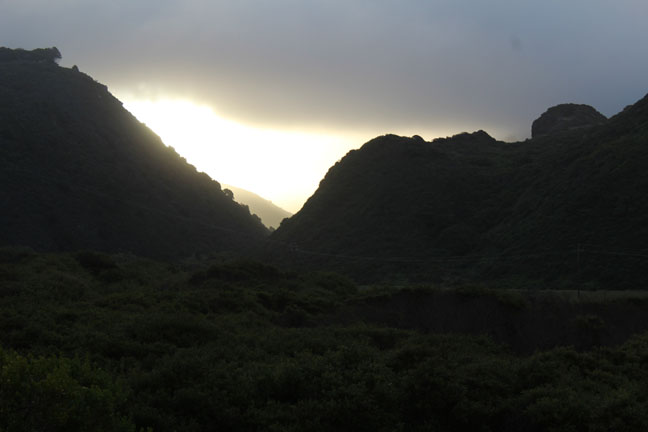 Oh, that one up there was my second sunrise… between to peaks in a green valley… because the high mountains and the shifting fog and clouds kept making the sun start the day over and over again.