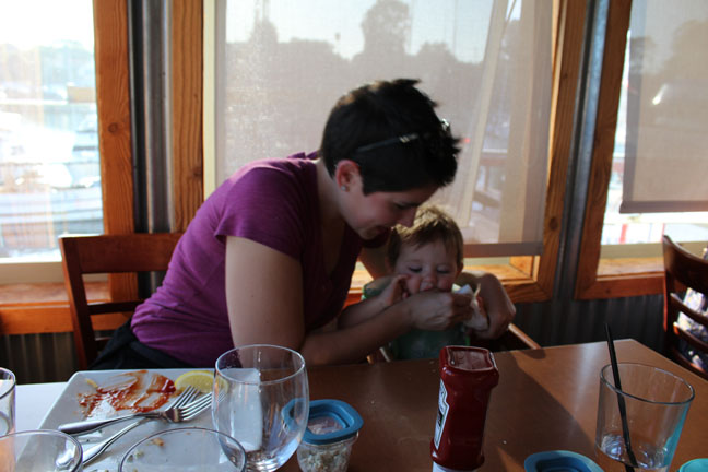 As I said, we had a lovely bite to eat in a place overlooking the Santa Cruz harbor. My cousin Mallorie, Clark’s mom, did not offer to clean me up, even though I am at least as messy an eater as he will ever be!