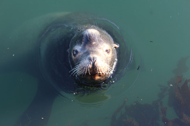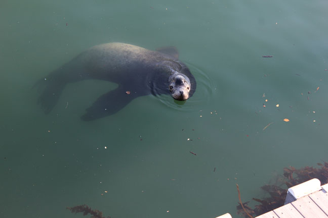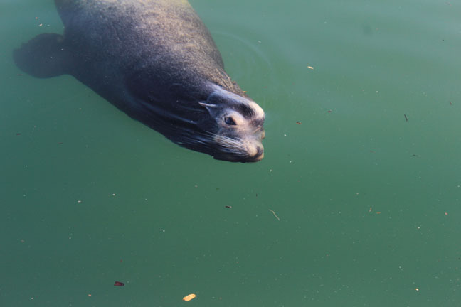 But seriously, I mentioned before that as we ate, we noticed something you rarely see in the wild… a seal and a sea lion swimming together. I have that one picture of both of them together that I put in the earlier post, but when we went down for a closer look after we finished eating, the seal was staying under water and I couldn’t get a close up of him. The sea lion was not so shy…