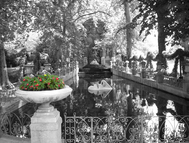 Now you are probably thinking that I put that face in the water with the magic of Photoshop. I didn’t… some French artist put that there… it is a very realistic looking statue of some kind… I just took most of the colors away. Here is the image without any changes…