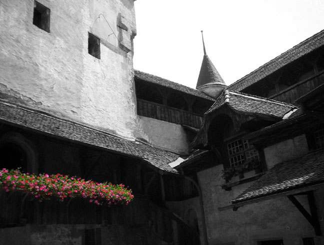 a 1 a 2 copyI love this picture of a Swiss castle… and I really love doing these pictures where I only leave some flowers with colors…
