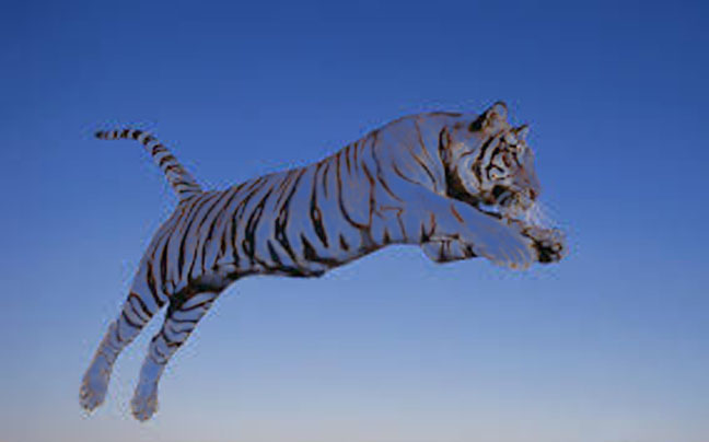 Tigers like to jump on their prey… wouldn’t it be cool if they were camouflaged to blend in with the sky at the top of their leap rather than the grass they hide in while waiting to pounce?
