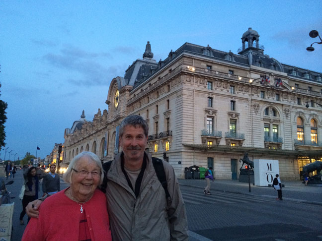 There we are walking but the Seine river in Paris. When the Grandkids turn 16, my mom takes them to Europe… wherever they want to go, within a reasonable time frame and budget… so, of course she was there. She likes to instill a love of art and culture and travel in kids… like she did with me and my brothers.