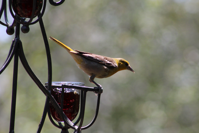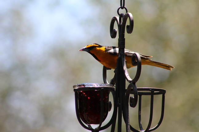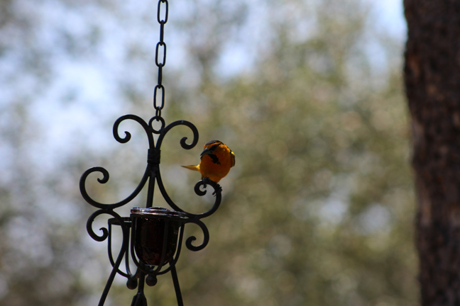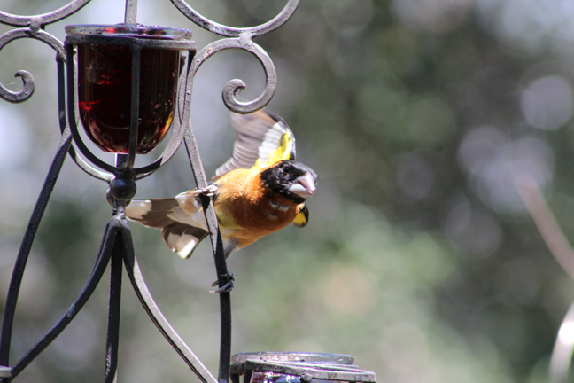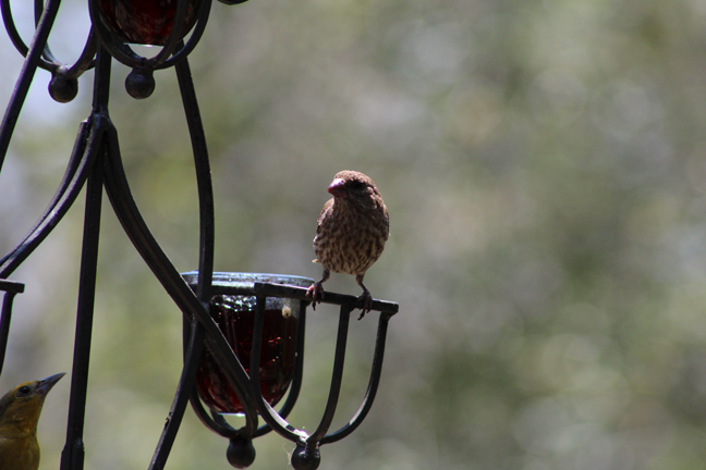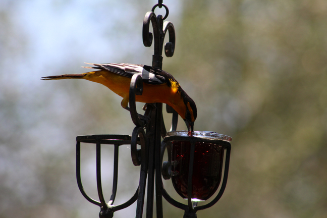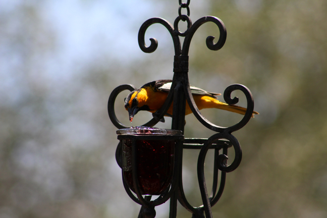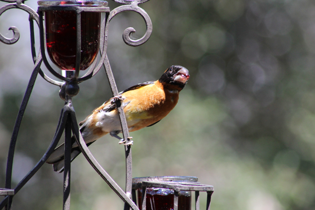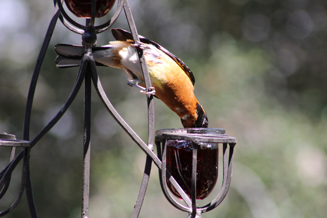 So that thing we did… which we are now done doing… was camping at my wife’s aunt and uncle’s house in my mother-in-law’s new motor home. And I had a little free time while they were all organizing stuff into it to sit on the deck… perfectly still… without moving a muscle… which is hard when holding a heavy camera with a zoom lens and no tripod… to take some photos of some birds eating grape jelly and seeds…