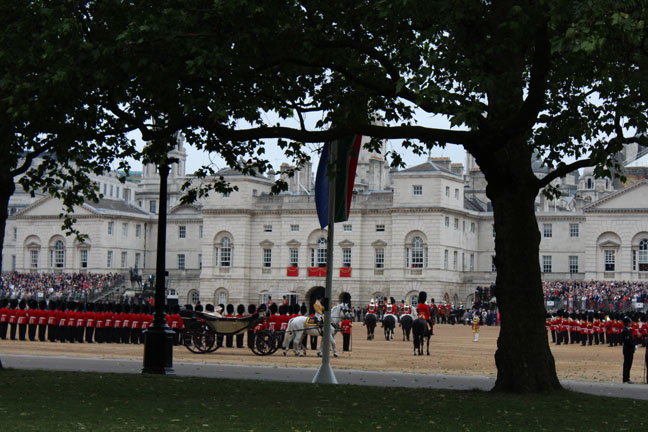 a 7And there was that one Bobby with the square jaw who looked like he had been set there by central casting to play the typical English Bobby. But then, just when you thought it couldn’t get any more exciting, the Trooping of the Color ended, and the Queen got back in her carriage to ride back down the Mall to Buckingham Palace… and my wife and Mollie and I ran and got ahead of her, and then things got really crazy…