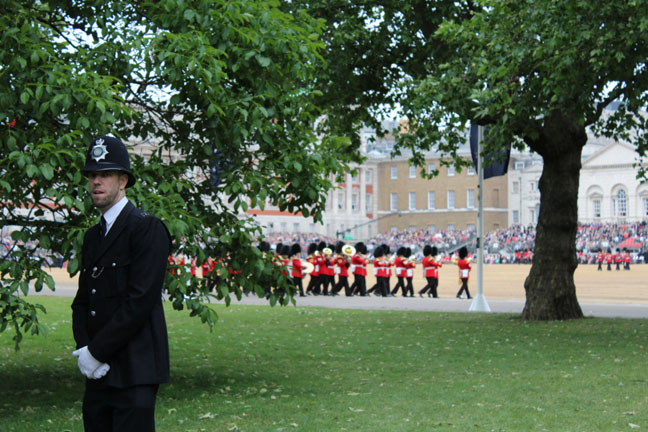 a 6And there were even Bobbies with machine guns keeping the Queen… and the marching bands… safe.