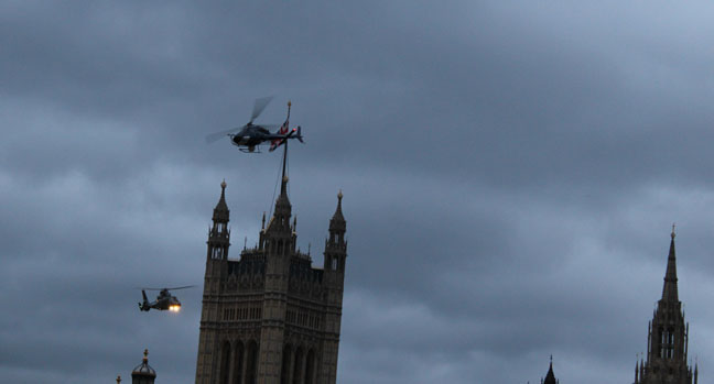 Yes, it would have been nice to see some actual actors, but when the movie comes out, and we see the helicopter zipping in front of Big Ben…