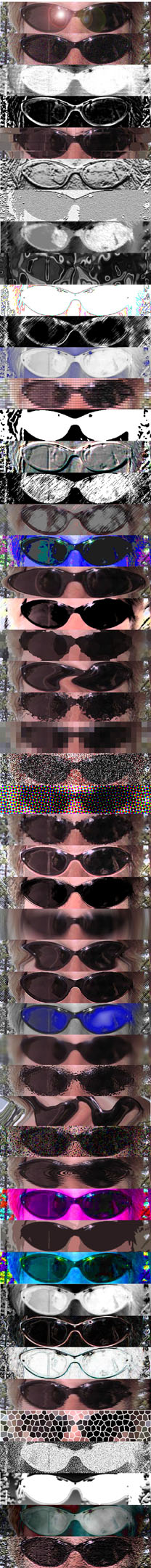 Remember when I made like 60 copies of that picture I use as the top bar image for my blog… the one with just a close-up photo of my face that mostly just shows my sunglasses… and then I spent hours using Photoshop filters on each copy… and then posted them one right after the other?