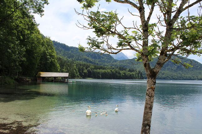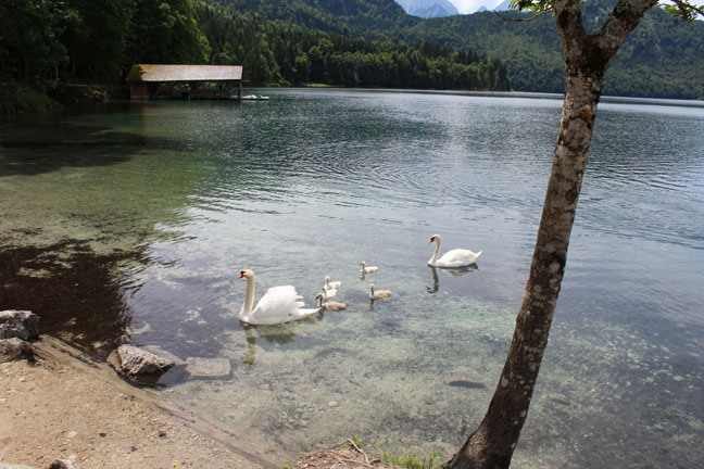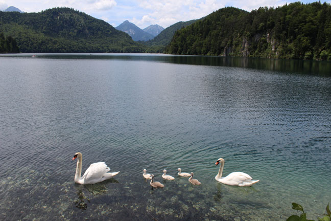 We spotted these swans in the alpine lake beside the town below Neuschwanstein castle.