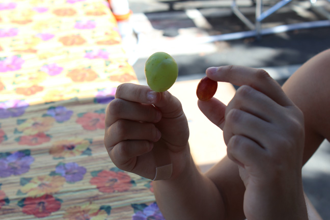 My younger daughter, Mollie, was amazed at the size of the grapes grandma brought. We had a little argument over whether, as her science teacher says, that GMO foods are completely safe to eat, or that, as I believe, the huge food corporations are just using all of us as long-term test subjects to see if eating them is safe over the long haul.
