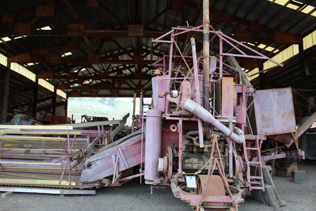 That right there is an old harvesting machine. I think it harvested some kind of bean. If you look closely at the top deck, you will see that it has a round ship’s steering wheel.