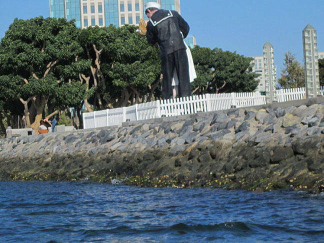 The giant statue of that famous kiss at the end of WW2. My daughters say it is a symbol of oppression, that the nurse didn’t give the sailor permission to kiss her. I will sneak down tonight and tear it down.