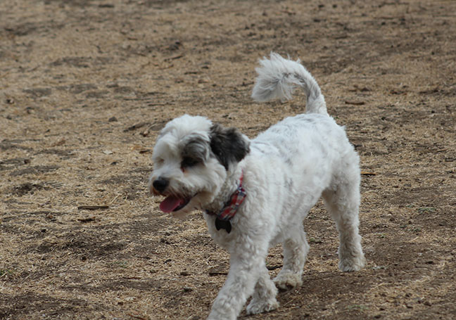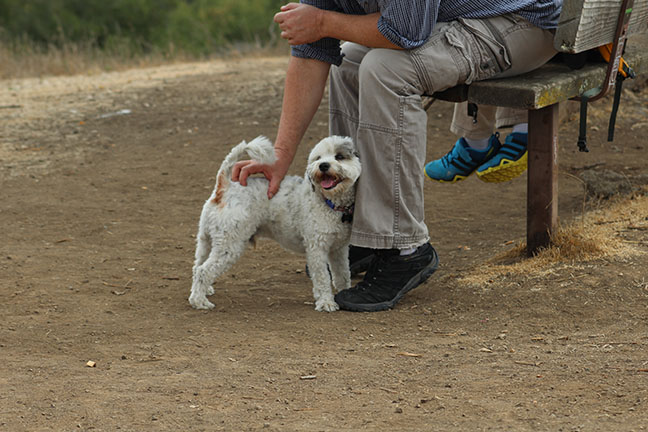 The father is the kind of person who would never pass up a chance to pet a dog.