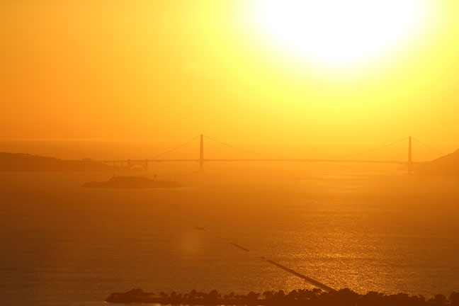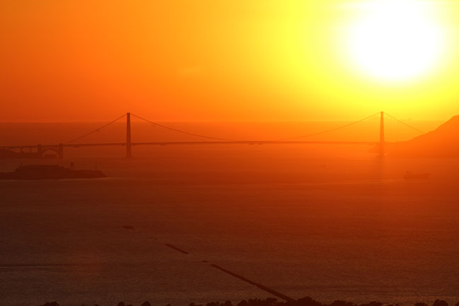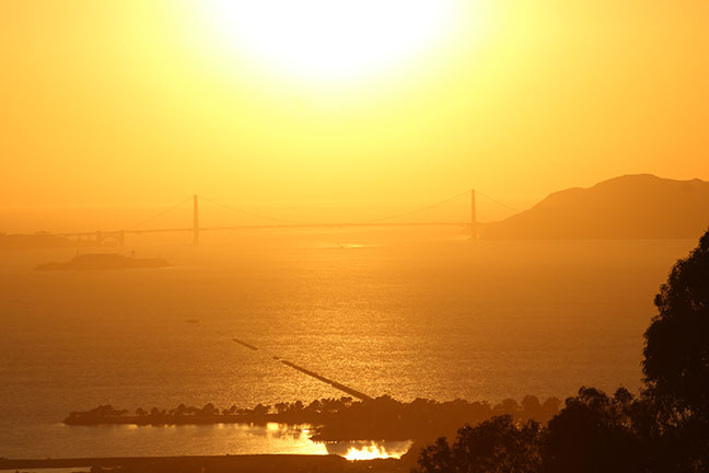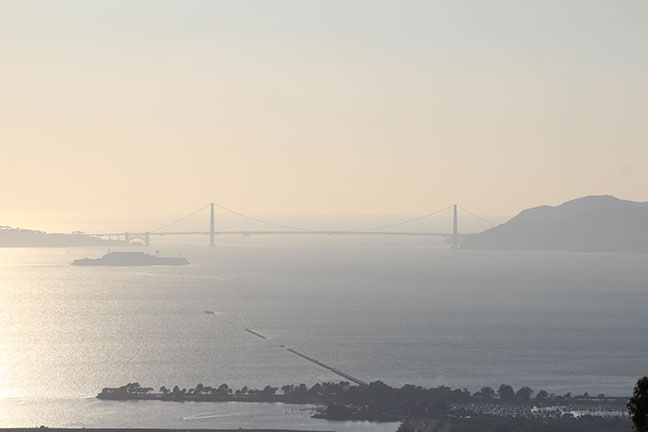 So of course while I was visiting my mom in the Bay Area, I went up into the Berkeley Hills to get some sunset pictures for you. Wrong time of year for nice sunsets, and the haze from the fires that are still filling the sky with smoke in California, mixed with a light misty fog, did not bode well for a nice sunset.