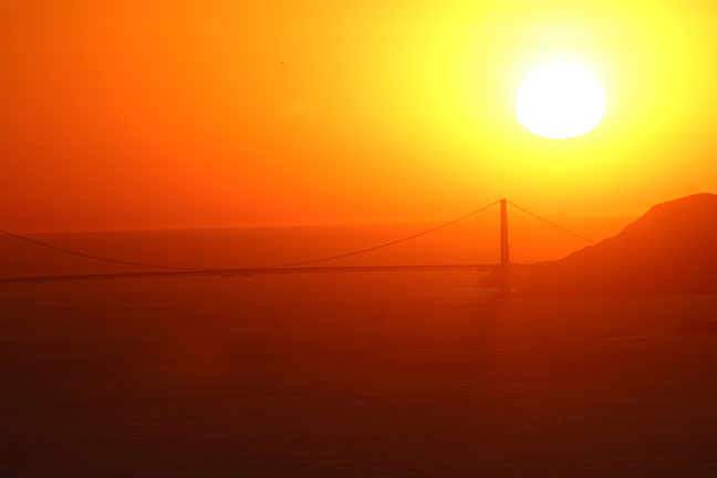 So of course while I was visiting my mom in the Bay Area, I went up into the Berkeley Hills to get some sunset pictures for you. Wrong time of year for nice sunsets, and the haze from the fires that are still filling the sky with smoke in California, mixed with a light misty fog, did not bode well for a nice sunset.