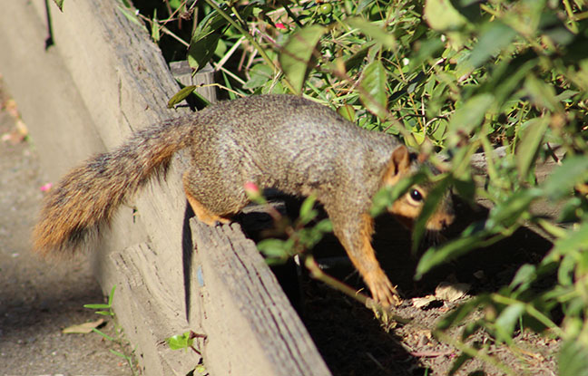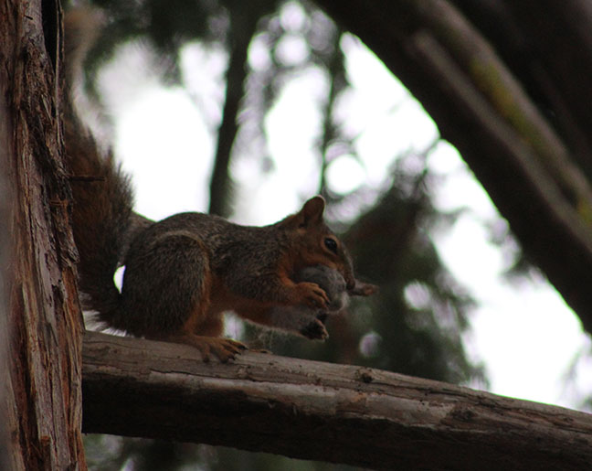 A weird squirrel I met in the Berkeley Rose garden… what does he have in his mouth? It looks like the stuffing from a plush animal doll. Is he building a nest? Is he a crack squirrel? You gotta love the Bay Area.