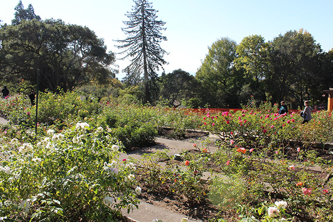 The famous Berkeley Rose Garden. Not too exciting at the wrong time of year for roses, which is why I hand-sprayed fake dew from my little misting spray bottle on all the best roses just for you in those earlier posts.