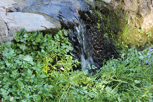 The Rose Garden uses a misting system to mist its roses, and hence, the rainbow.