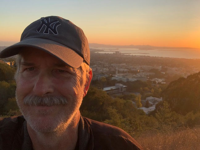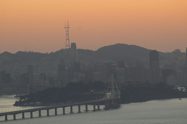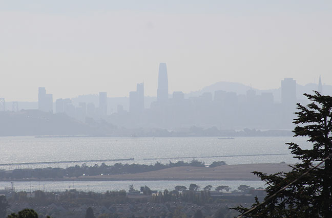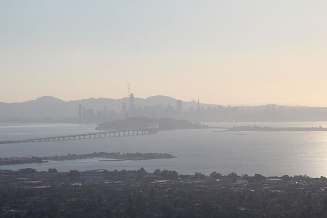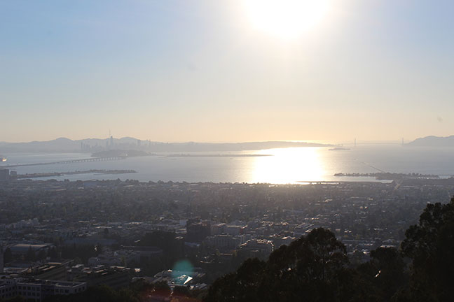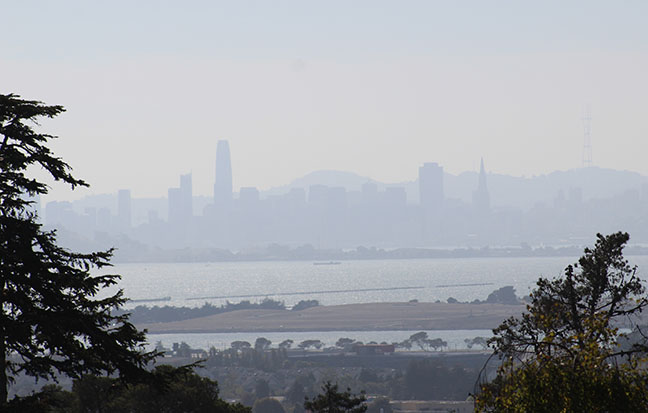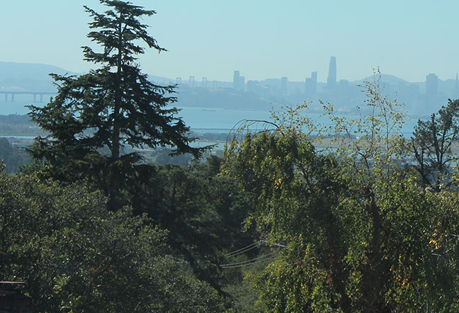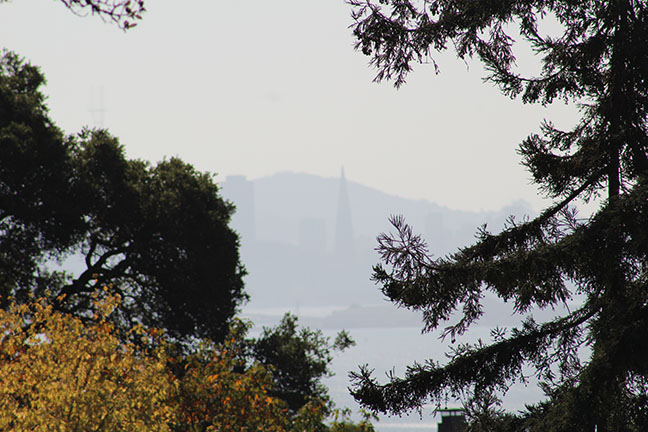 From the Berkeley Rose Garden, she peeked coyly out from behind the trees.