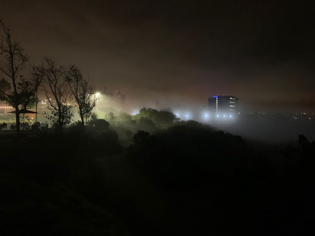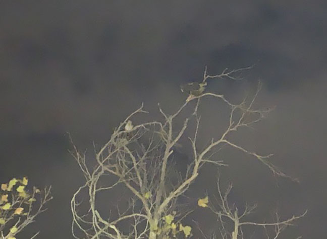 It also lets me see lots of wild animals. Raccoons, coyotes, snakes, lizards, tarantulas, and owls. I tried to take a picture with my phone of this owl on the top of a two-story building. My phone does not like low-light work from any distance.