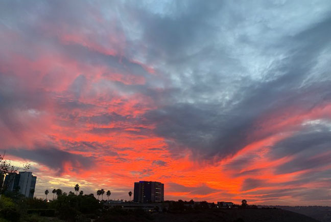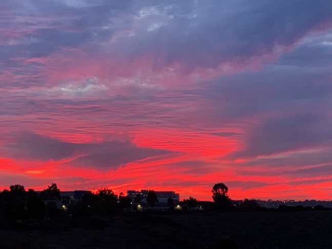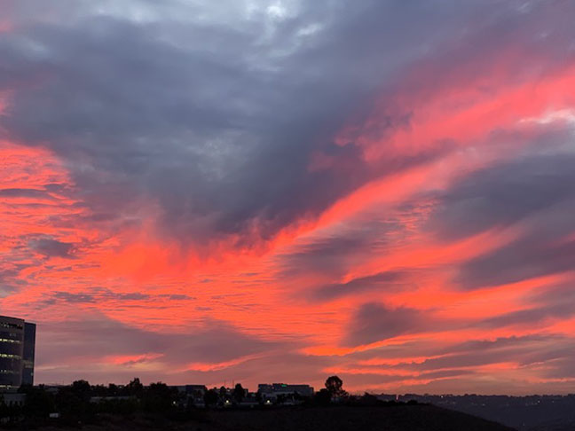 My job as a security guard lets me watch the sunsets over a pleasant valley.