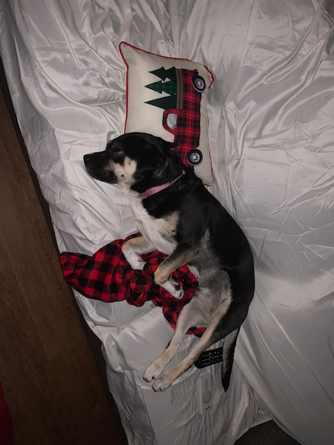 She has her blanky, a pillow, and the remote control for the tv… life is good.