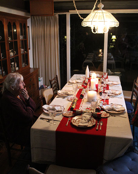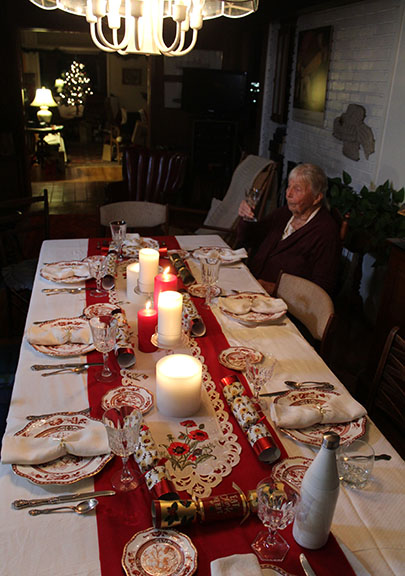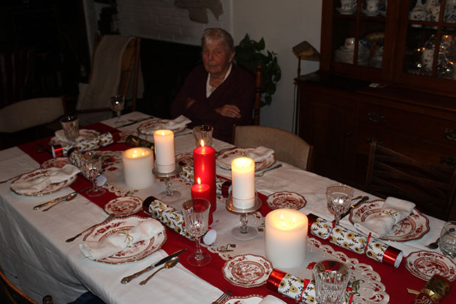 All just to keep my 97-year-old mother safe. There she is waiting for us to get the dinner served.