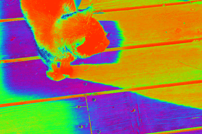 I thought I would mix up our study of light and shadow with some digital filter magic. That is a black cat, looking at the shadow of its own belly.