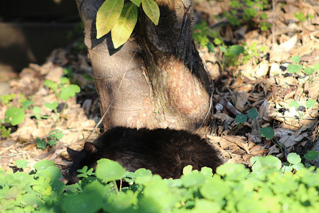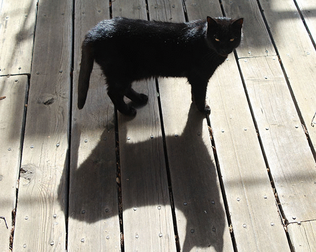 The same black cat and her shadow. Notice the two nails that make eyes in the shadow.