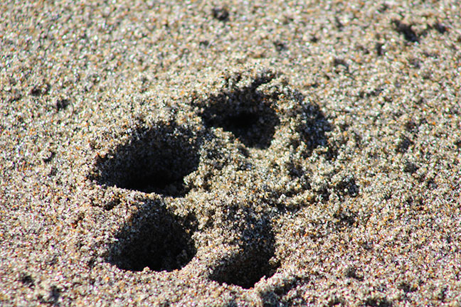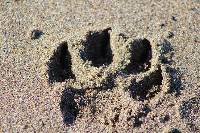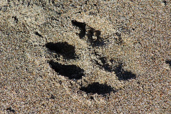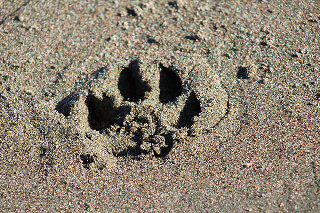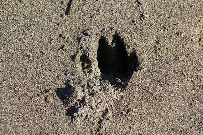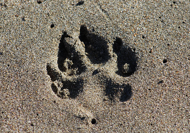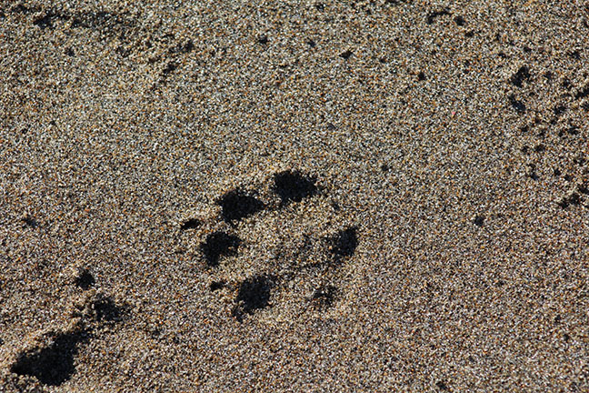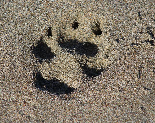 For a photographic study of light and shadow, dog prints on a beach can’t be beat.