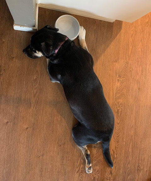 And last but not least, one of our three dogs, Emmie, who fell asleep right after eating.