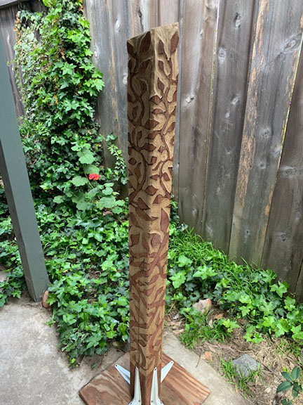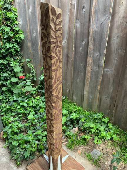 This time I took two photos of edges of the post, instead of four photos, one of each side, so you can sort of see how the vines are going to curl around it. I still don’t know if I am going to carve deep enough to do an underlaying level of vines, but it should be cool when I paint and varnish it.