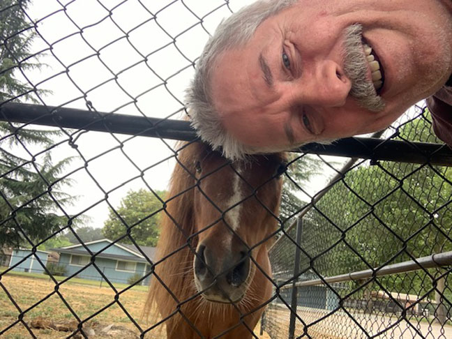 But she is a tiny miniature horse. And she came right over when she saw me, because, you know, dogs babies and horses love me.