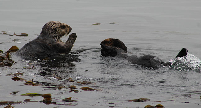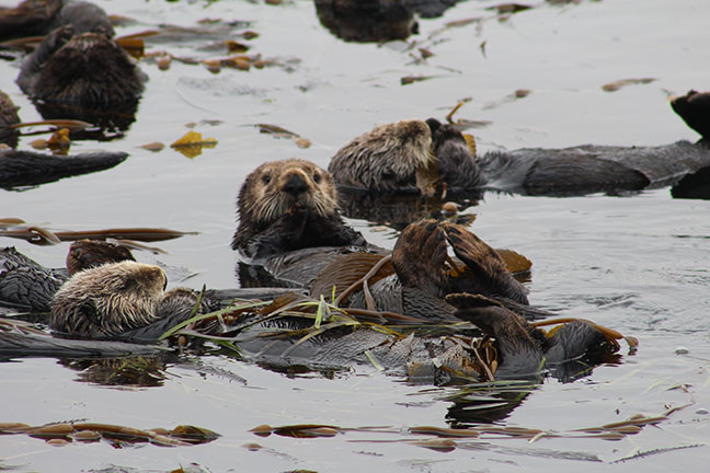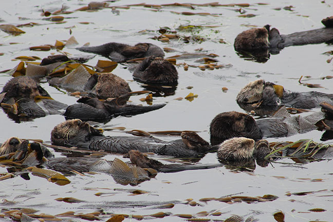 Okay, my new idea is that the otters wrap themselves in the kelp to keep from drifting away from their friends while they sleep. It also probably hides them from sharks. Somebody should Google that.