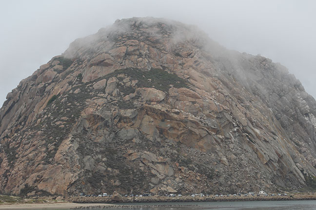 Moro Bay has this huge rock out on the end of a point. It looms over the whole area, and is covered with nesting sea birds of all types. For scale, you can see cars parked along the bottom front of the rock.