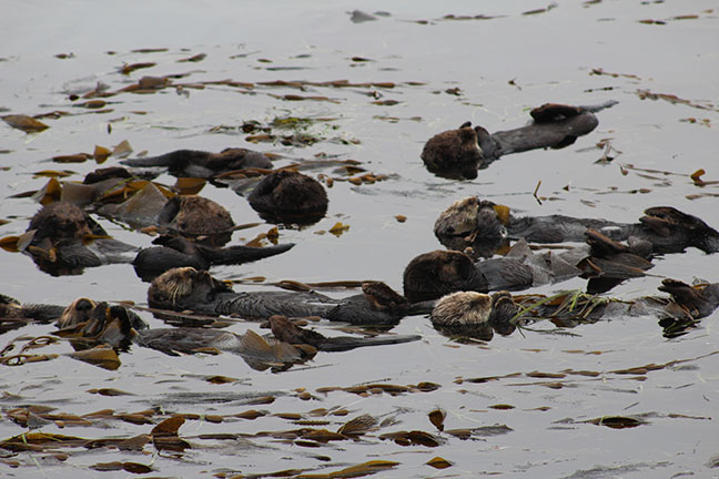 Okay, my new idea is that the otters wrap themselves in the kelp to keep from drifting away from their friends while they sleep. It also probably hides them from sharks. Somebody should Google that.