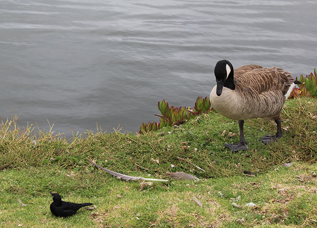 Here a Canadian Goose stalks his natural prey, those black birds with creepy yellow eyes just like the flamingos from the start of this adventure. What, you didn’t know geese were carnivorous?