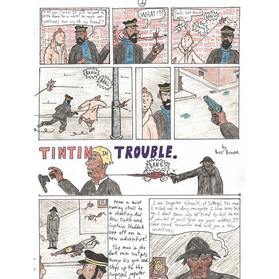 A Tin Tin comic I started way back in the 70’s and never finished, some much more recent tikis, one of my first Photoshop experiments when I taught myself to add my face to military history images, a study I made in Amsterdam of the buildings reflected in the canal, and some random artwork.