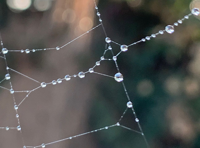 Any focusing issues is probably because the webs were moving in the wind. Look how many sizes of droplets there are!
