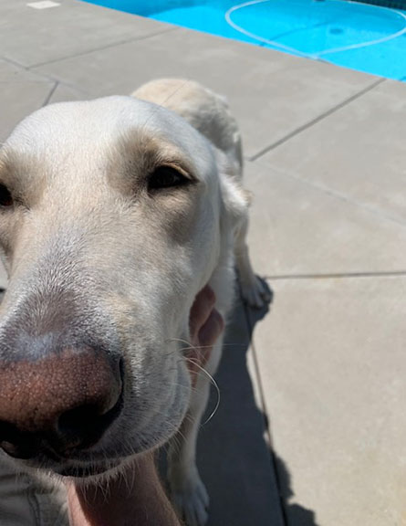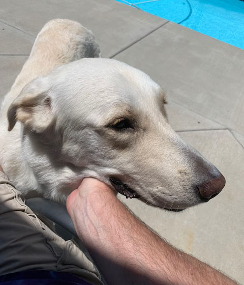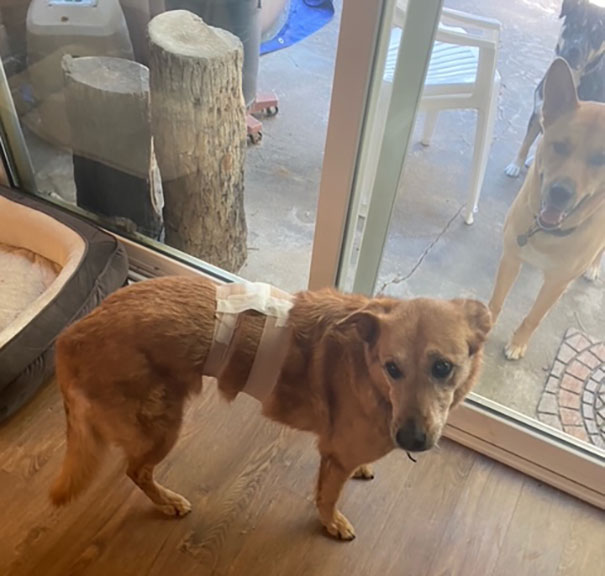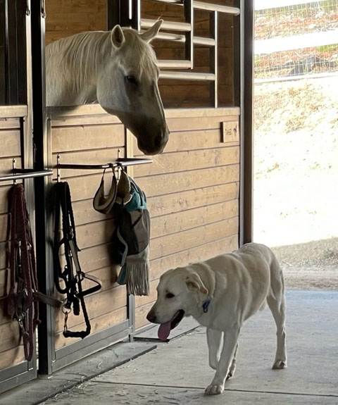 Huck has been adopted into a permanent home on a farm, and has a new friend.