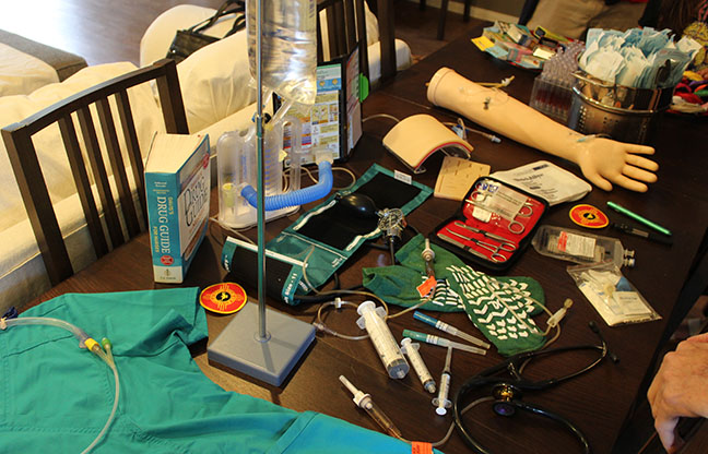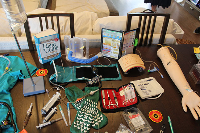 And a table covered with things that nurses need to know about.