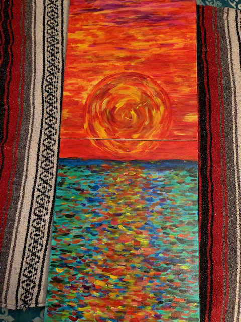 But they are a matched pair. You can hang them together for a really big painting, or hang them on their own. Or put the top one above the lower one, but leave a separation.
