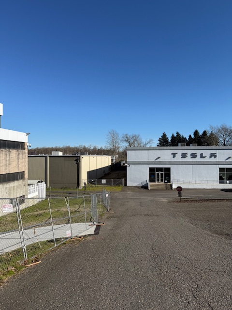 It is funny that there is a Tesla dealership behind the building.