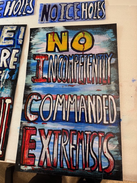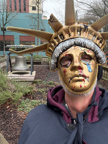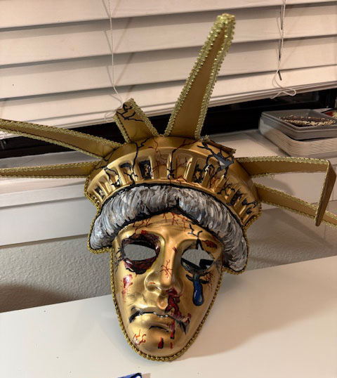 I spent all week painting signs, building my moral outrage, glad for a way to use art to make a stand. But my favorite creation, so far, is the mask of liberty!