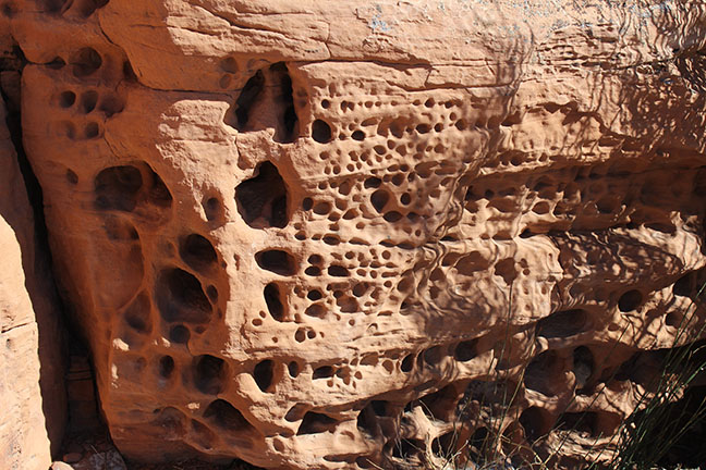 I really don’t get how hollows form underneath like that, but I guess the sandstone was softer there, and wind helped the water?